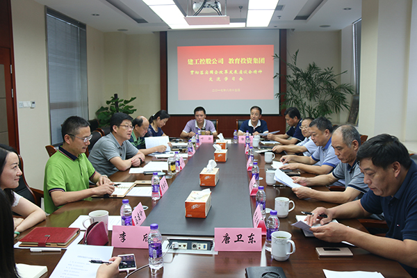 8月15日下午,王宏董事長帶領(lǐng)建工控股公司在揚領(lǐng)導(dǎo)、相關(guān)部門負責(zé)人赴教育投資集團,圍繞貫徹落實全市國企改革發(fā)展座談會精神進行學(xué)習(xí)交流。教投集團周翔董事長等領(lǐng)導(dǎo)熱情接洽。