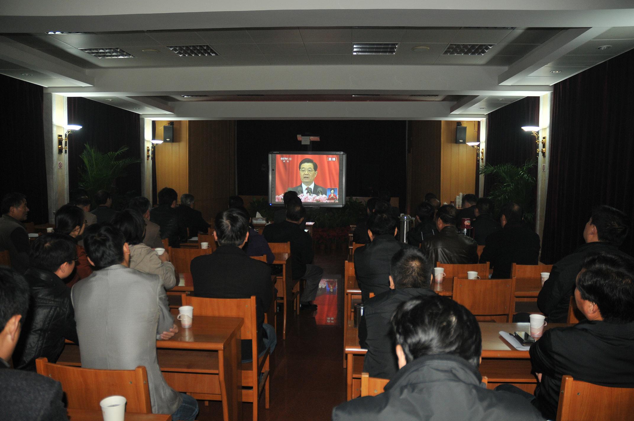 建工控股機關組織收看中國共產黨第十八次全國代表大會開幕式 時間:2012-11-094257 11月8日上午9時,舉世矚目的中國共產黨第十八次全國代表大會在北京勝利開幕。建工控股機關組織中層以上管理人員和黨員在一樓大會議室集中收看開幕式現場直播。