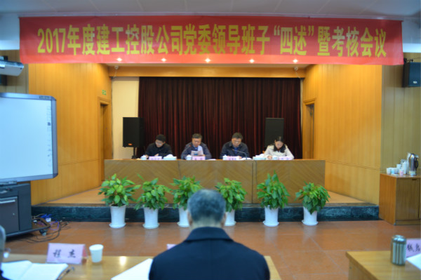 2月24日上午,建工控股公司召開黨委領導班子2017年度“四述”暨考核會議,建工控股、華建公司中層以上干部及所屬二級單位經營層人員參加會議。公司黨委書記、董事長王宏主持會議,市委組織部機關干部處陳濟昌處長,市國資委辦公室徐敏主任等代表考核組到會指導。